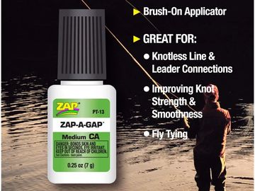 I have nine different adhesives in my fly tying room. There are three that I could not tie flies without. Brush on Zap-A-Gap has been a game changer for me. When Dave Whitlock first introduced me to it I did not believe in the product. After tying thousands of flies with it, fishing the flies, and seeing how well they hold up, I am convinced. This stuff is amazingly versatile. Check out Dave's DVD on all the different things you can do with it.